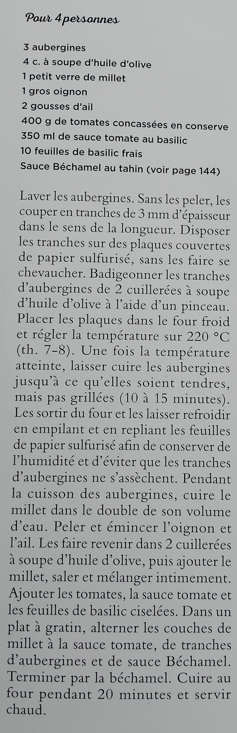 servir avec un rôti de porc et des aubergines coupées en 2 quadrillées, marinees et 2c soupe de miso, 2 ail rape, 1c soupe vin blanc, 1c soupe de miel, 2c soupe soja revenues au four à 180°C 10-25 minutes sur la peau