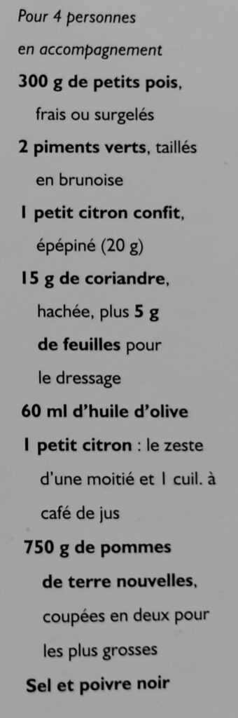 Légumes Recettes de cuisine Pommes de terre et petit pois Publié 1 novembre 2025 Attention à ne pas mettre trop de citron. Ingrédients Préparation