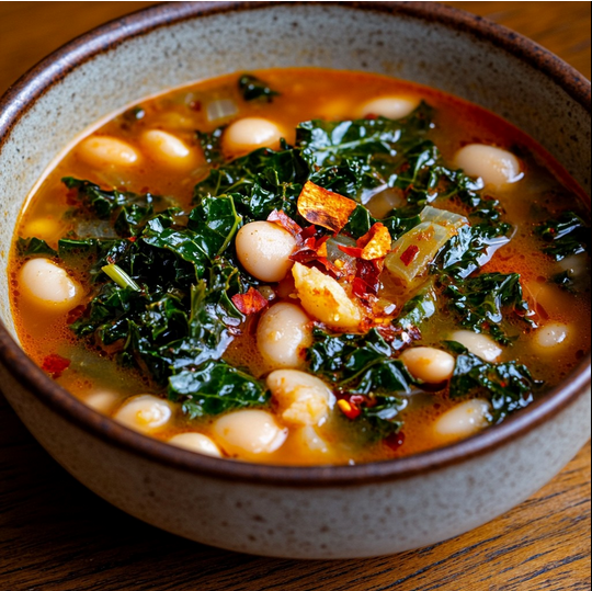 Soupe rustique haricots blancs, chou vert et ail